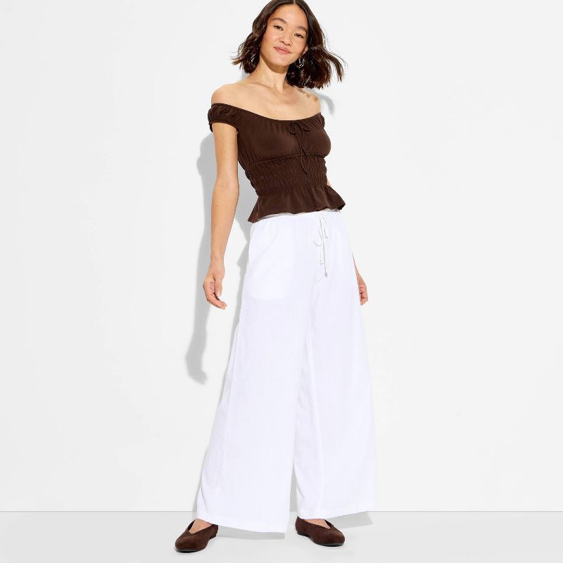 On-and-Off shoulder peasant top from Wild Fable™ for casual outings. Crafted from a fabric blend of cotton, recycled cotton and spandex for all-day comfort. It boasts a smocked bodice and front ties f…