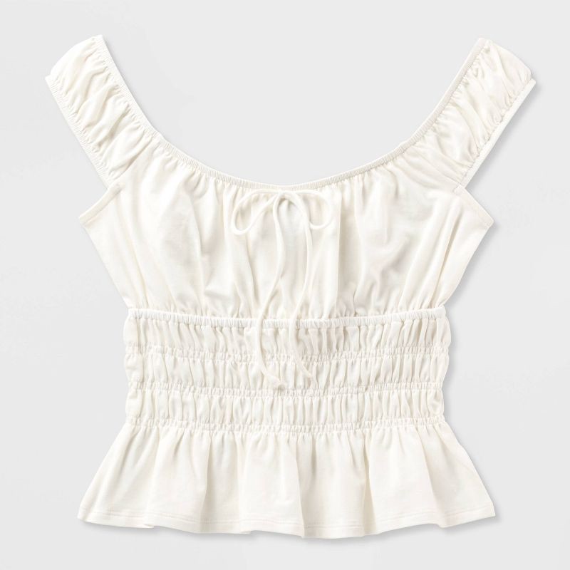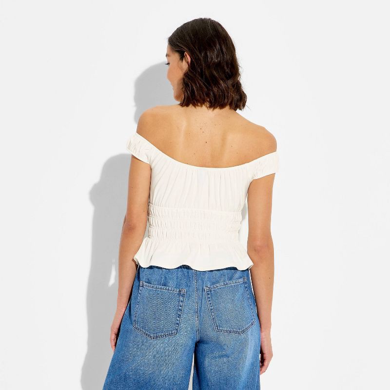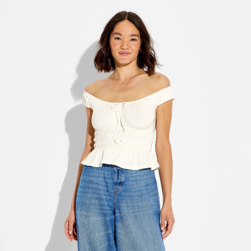 Women's Mini Cap Sleeve Off the Shoulder Smocked Peasant Top - Wild Fable™ Cream XL