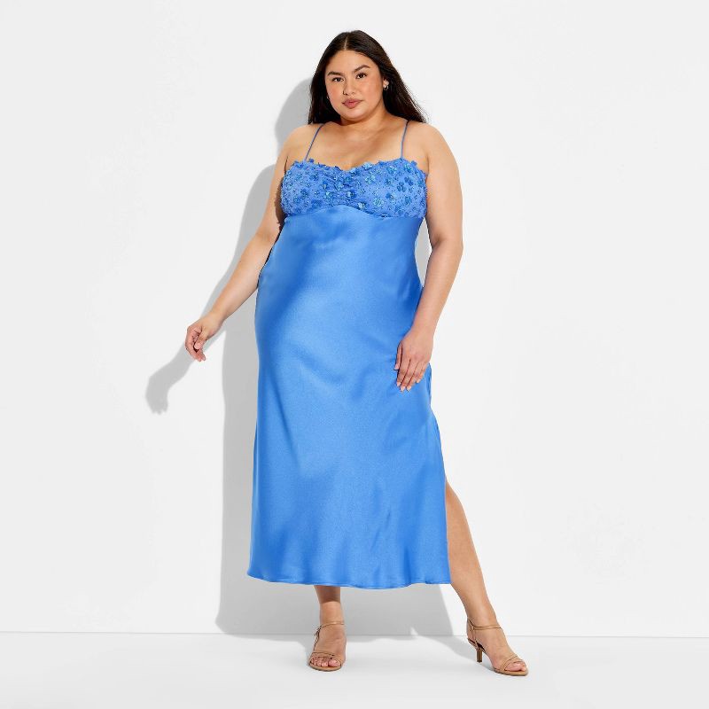 Women's Maxi Sequin Satin Empire Waist Dress - Wild Fable™ Blue XXL