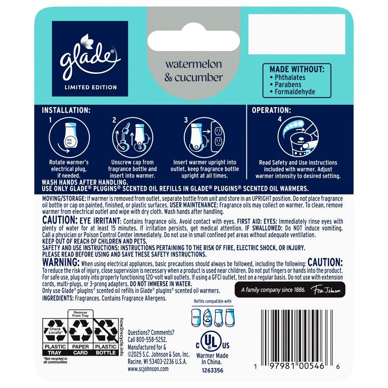 - Includes one Glade® MaxControl™ warmer and one Watermelon & Cucumber PlugIns® scented oil refill infused with bright, revitalizing springtime scents
