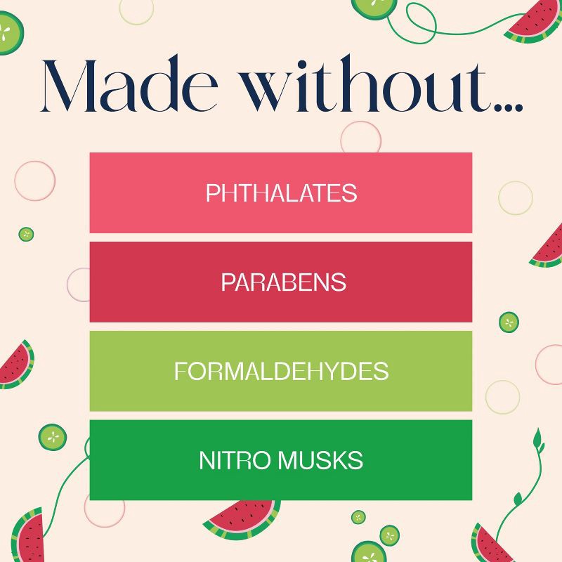 - This new fragrance blends the lush, juicy aromas of watermelon with clean, refreshing undertones of cucumber water