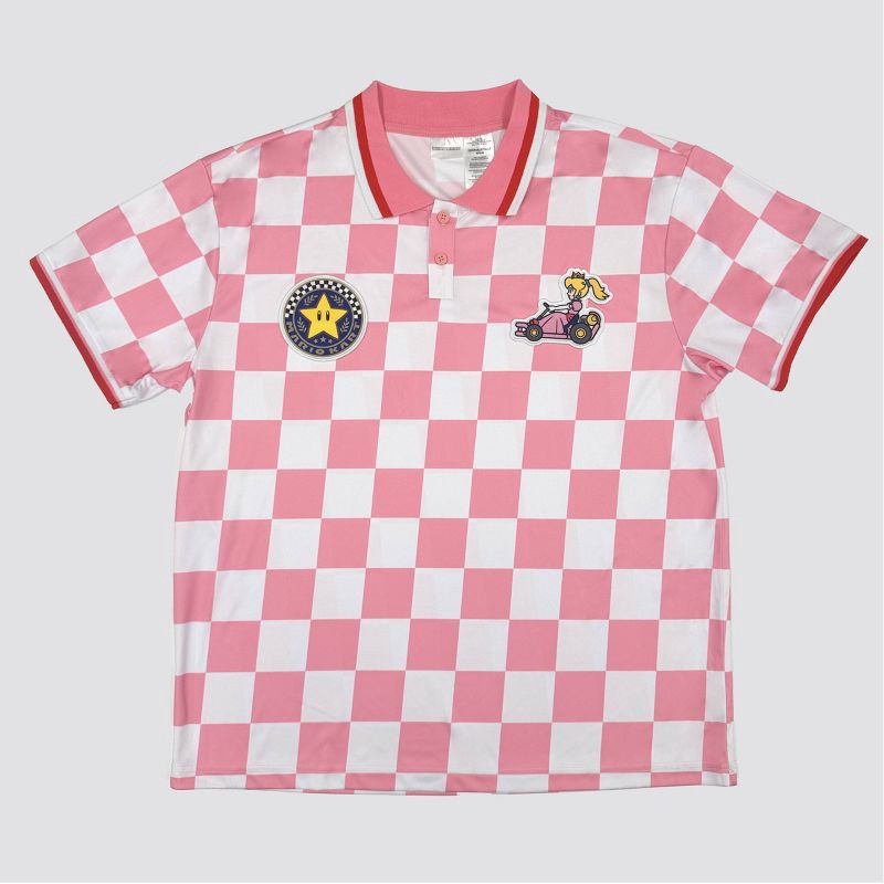 Super Mario Mario Kart Checkered Sport Polo: Princess Peach - L
