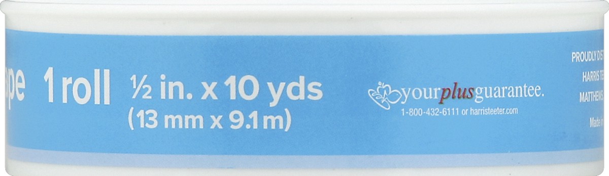 9.1 meters. 1/2 in x 10 yds (13 mm x 9.1 m). Not made with natural rubber latex. Your Plus Guarantee: 1-800-432-6111 or harristeeter.com. Made in China.