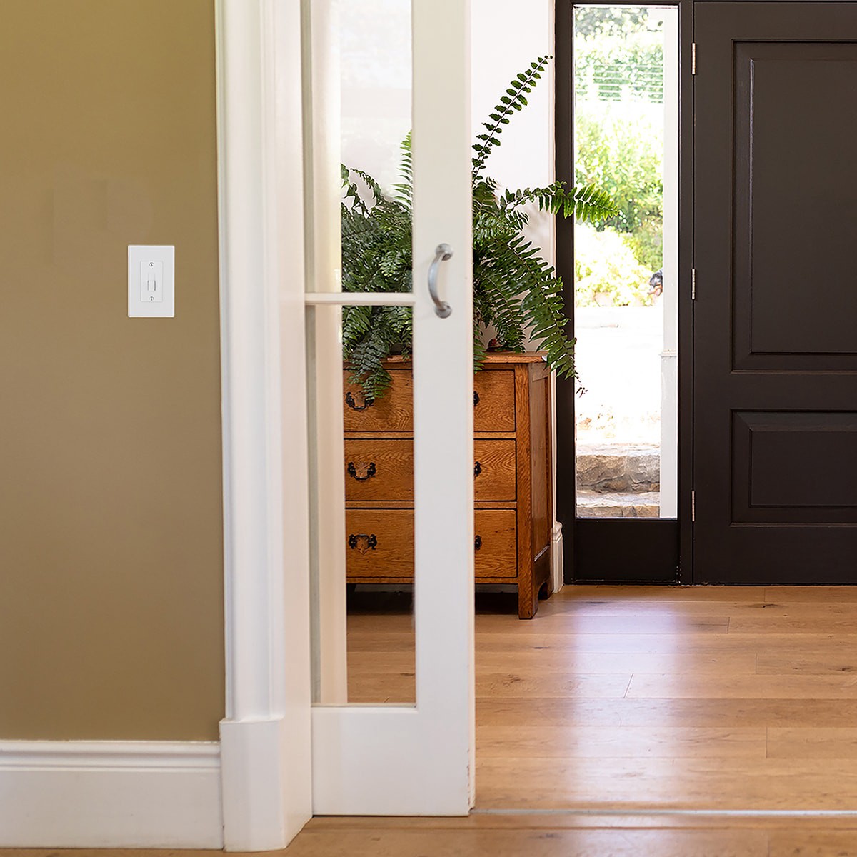 Toggle switch configuration. Completely covers old outdated outlets and switches. No rewiring required. Contemporary design. Will not crack or distort during installation. Includes screw(s) in matchin…