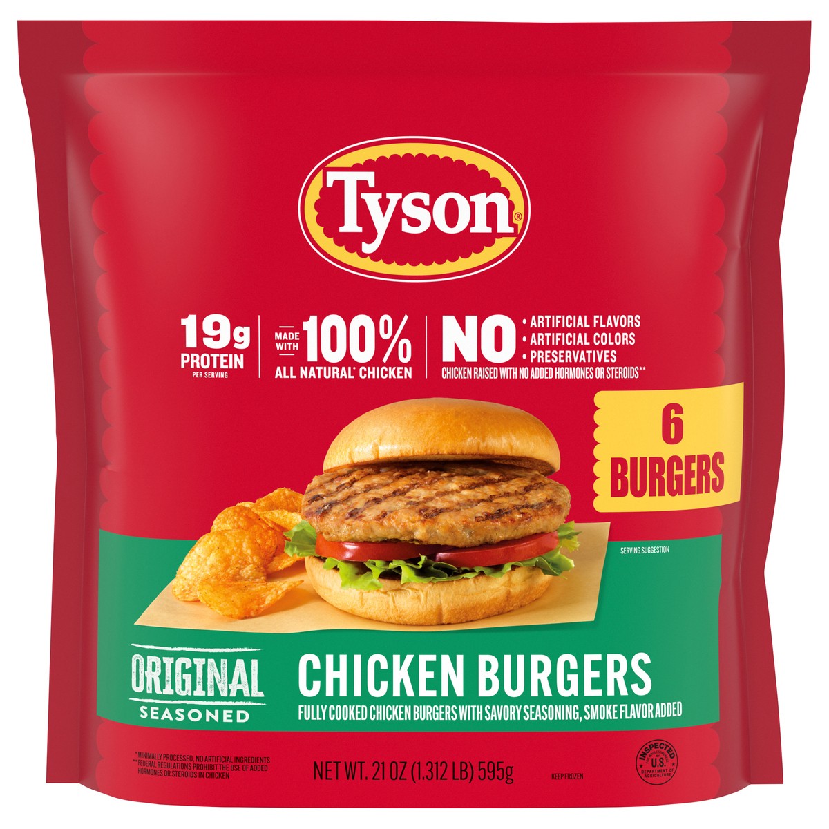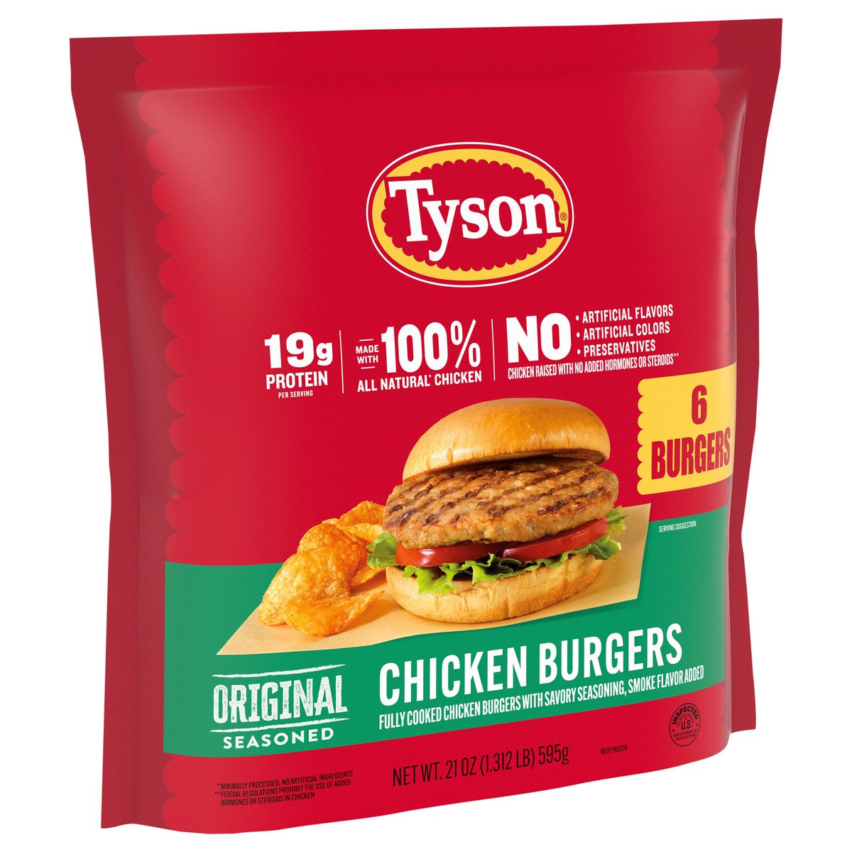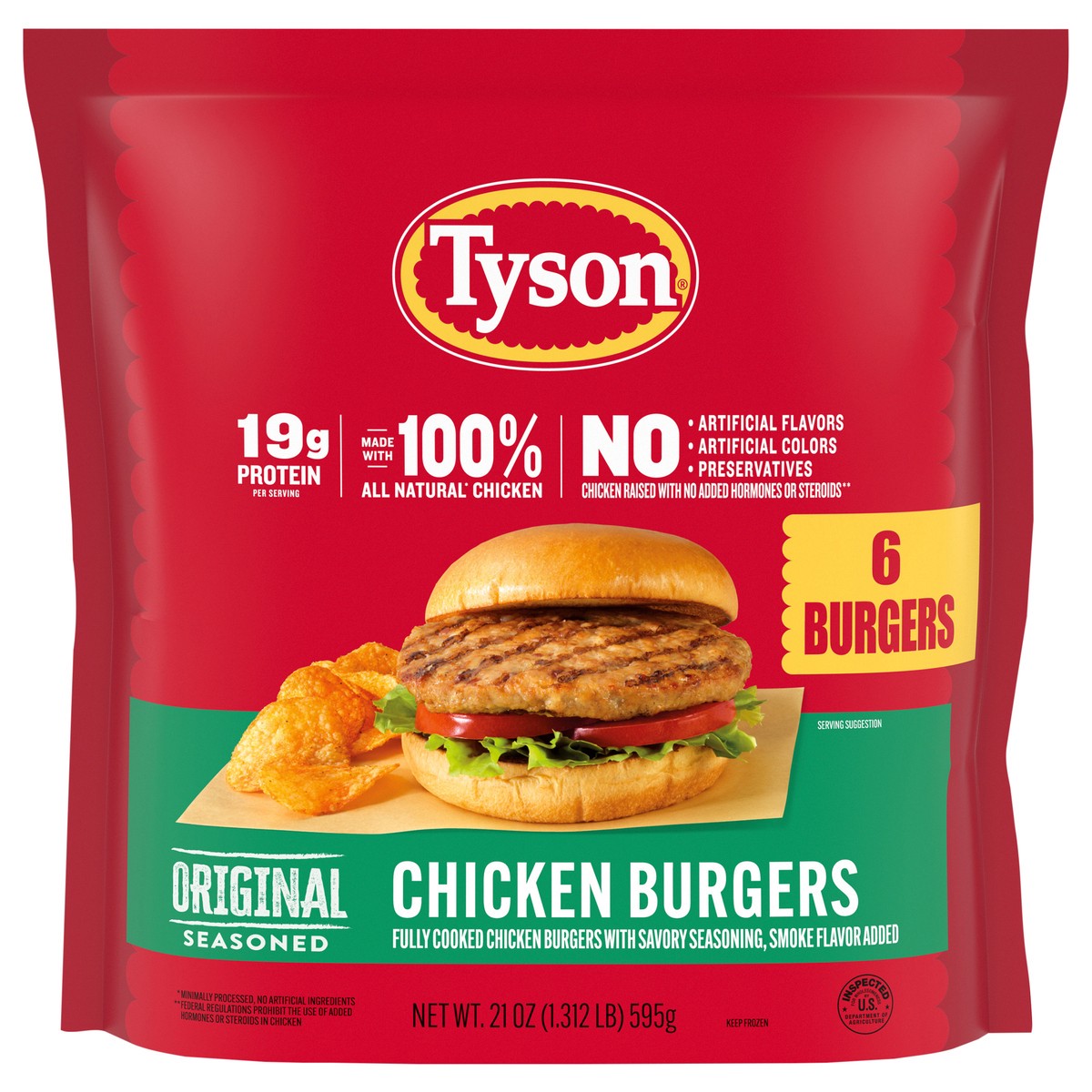 A classic twist on a chicken favorite, Tyson Original Seasoned Chicken Burgers are the perfect addition to your at-home dining experience. These chicken burgers are fully cooked, seasoned to perfectio…