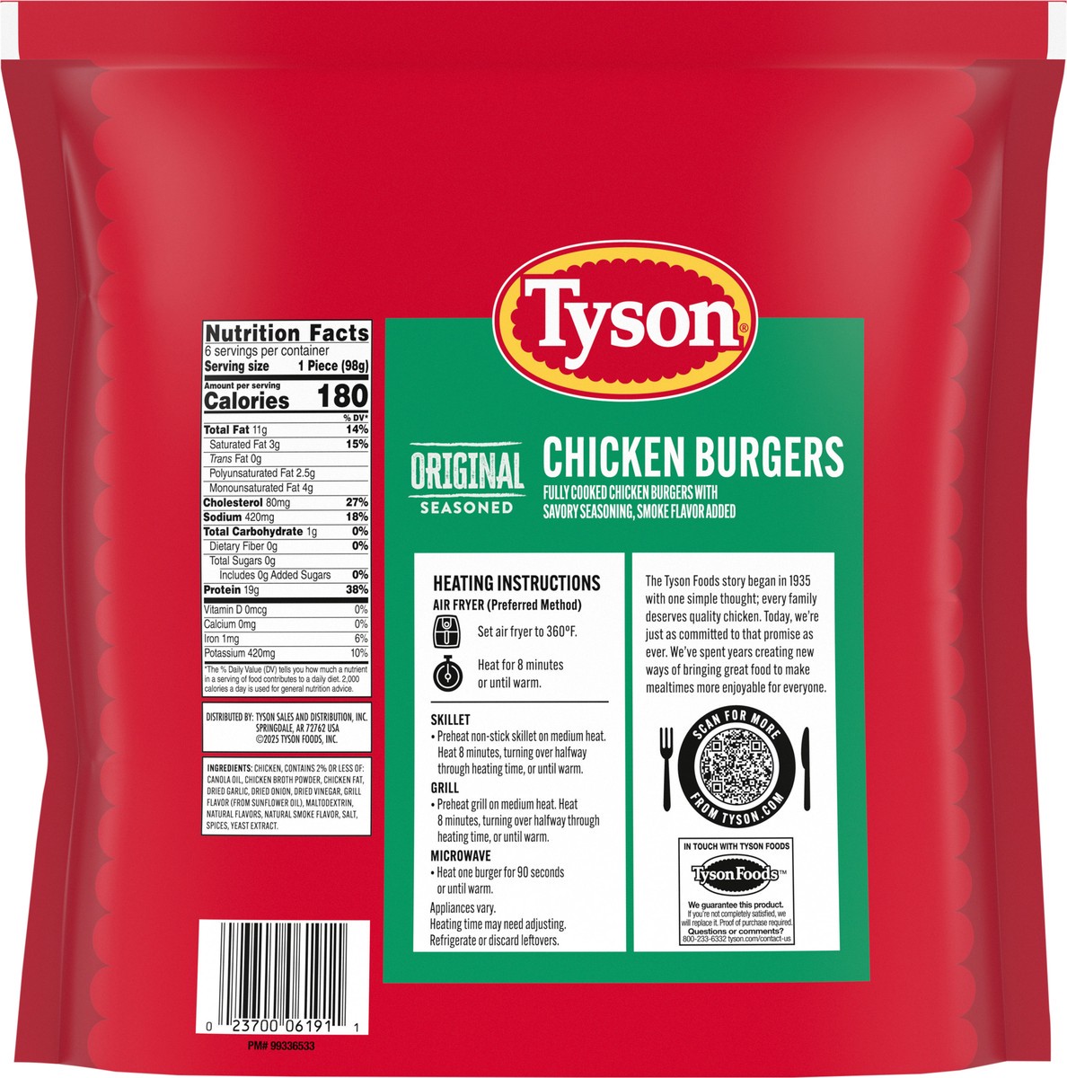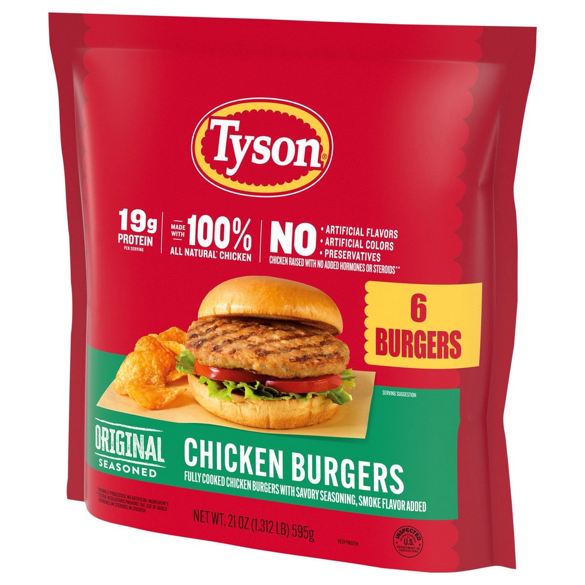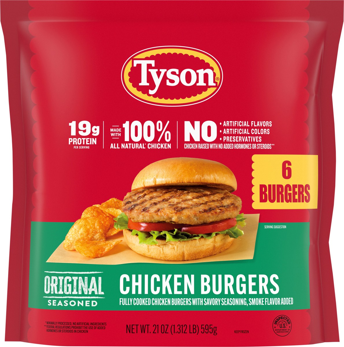 A classic twist on a chicken favorite, Tyson Original Seasoned Chicken Burgers are the perfect addition to your at-home dining experience. These chicken burgers are fully cooked, seasoned to perfectio…