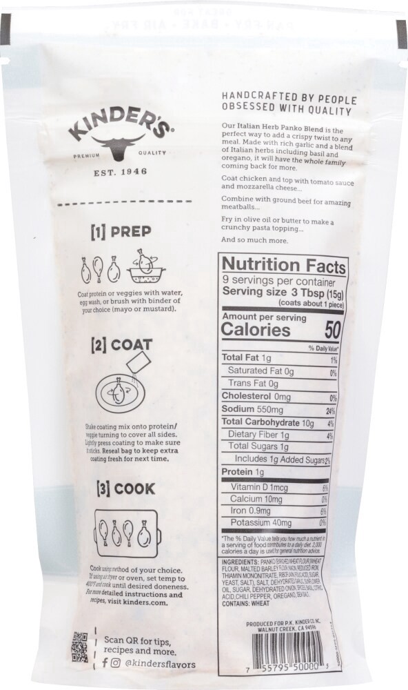 Panko (Enriched Wheat Flour [Wheat Flour, Malted Barley Flour, Niacin, Reduced Iron, Thiamin Mononitrate, Riboflavin, Folic Acid], Sugar, Yeast, Salt), Salt, Dehydrated Garlic, Sunflower Oil, Sugar, D…
