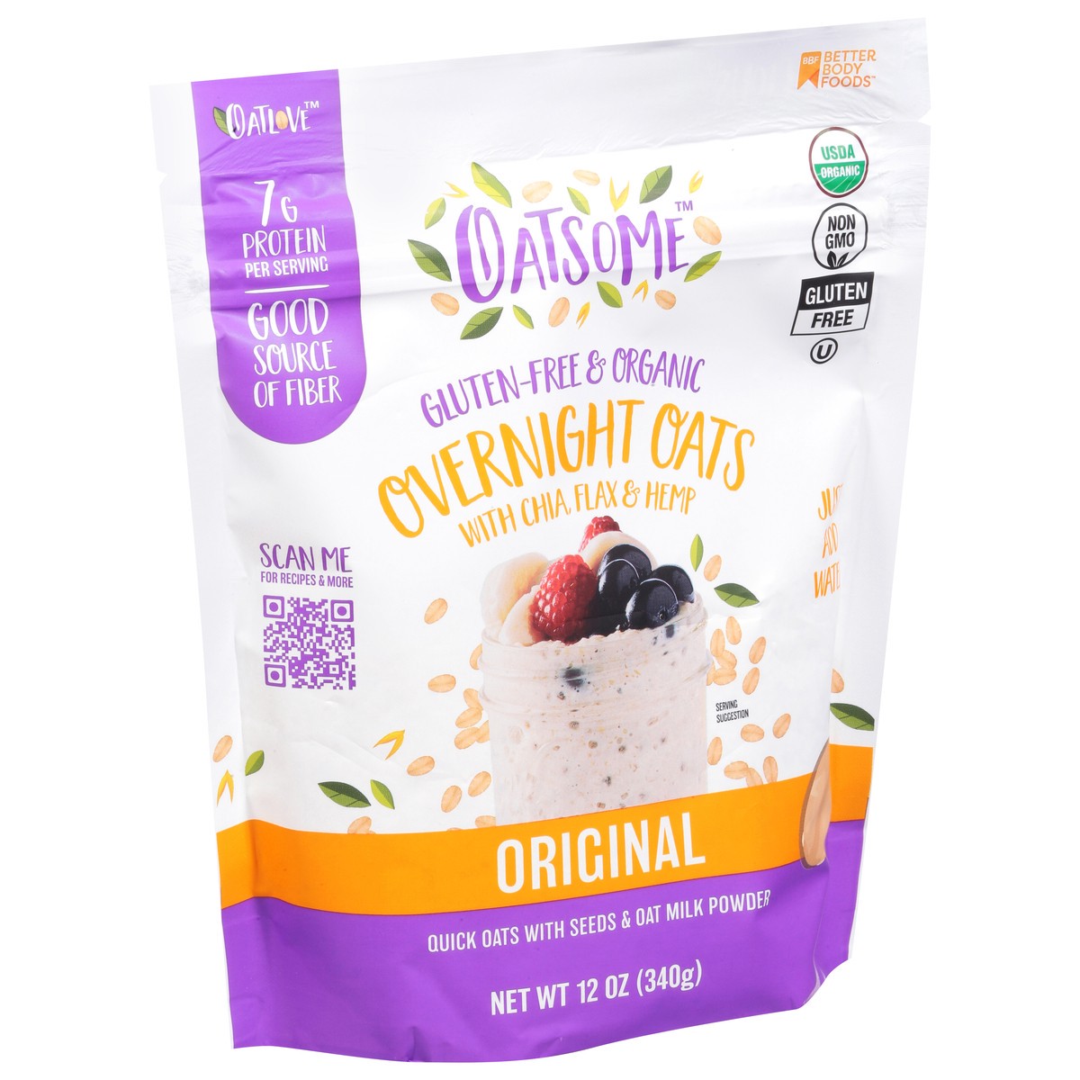 Overnight oats with chia, flax and hemp; Original; Just Add Water; USDA Organic; Non-GMO Project Verified; Gluten free.