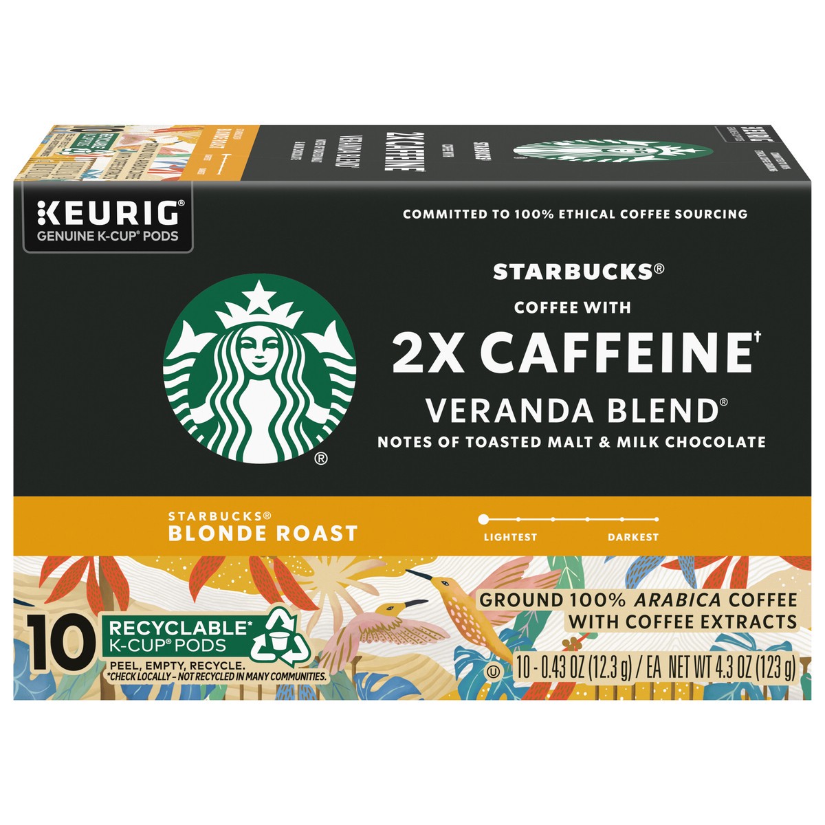 - 2X THE CAFFEINE: Starbucks Coffee With 2X the Caffeine Veranda Blend K-Cup Pods deliver 2X the caffeine compared to one pod of Starbucks K-Cup black coffee when brewed as directed—includes 10 coffee pods for Keurig coffee makers