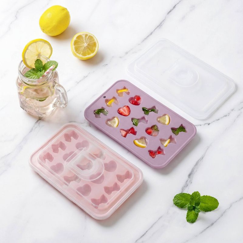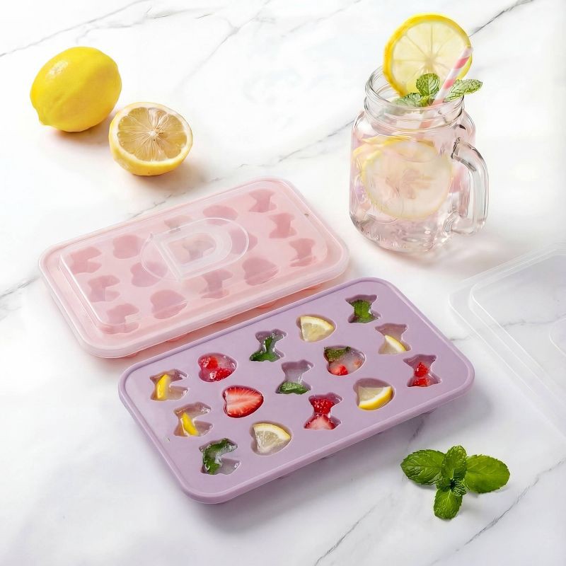 - 2-Piece Tray Set – Includes two coordinating silicone ice trays with lids for convenient freezing.
