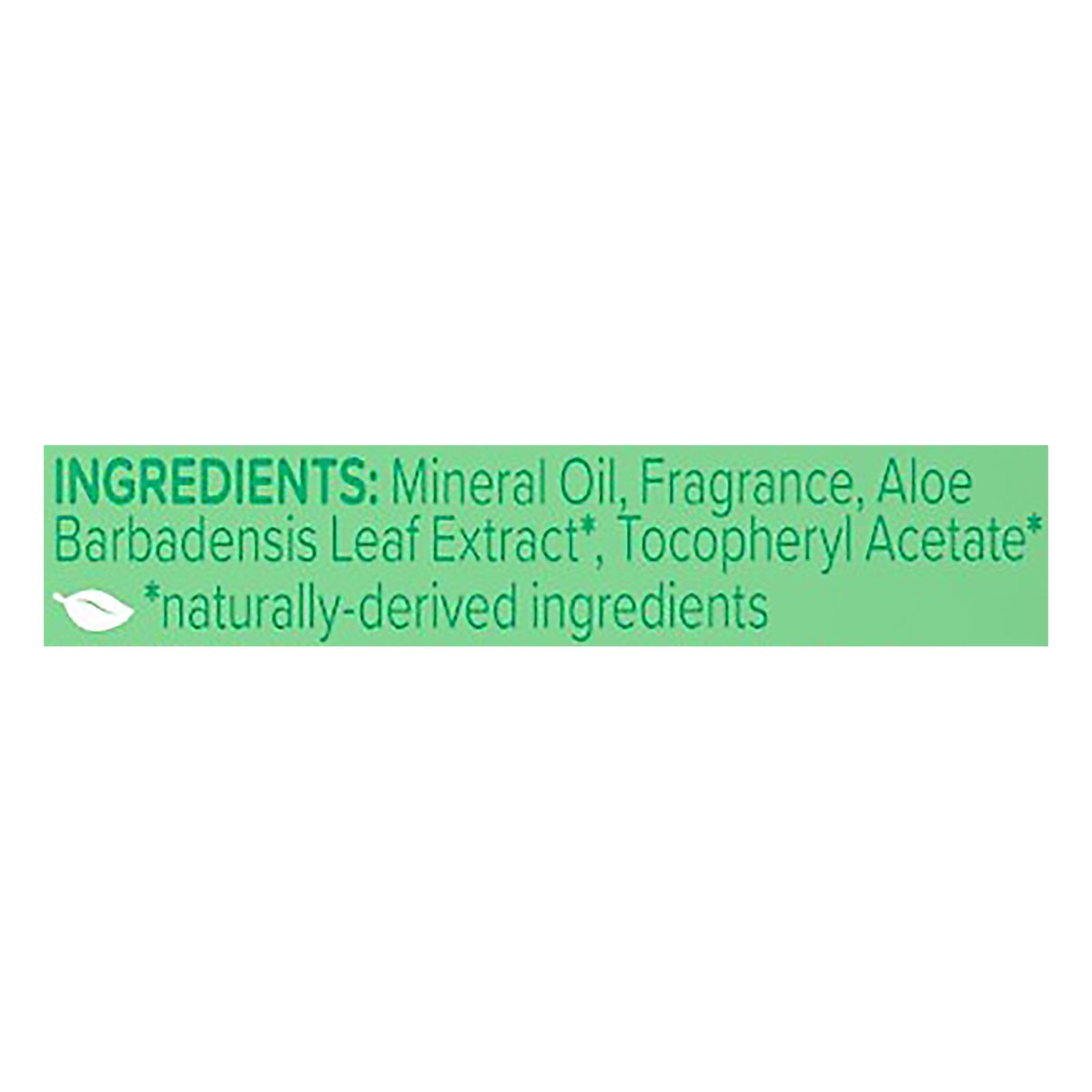 Mineral Oil, Fragrance, Aloe Barbadensis Leaf Extract*, Tocopheryl Acetate* * naturally derived ingredients