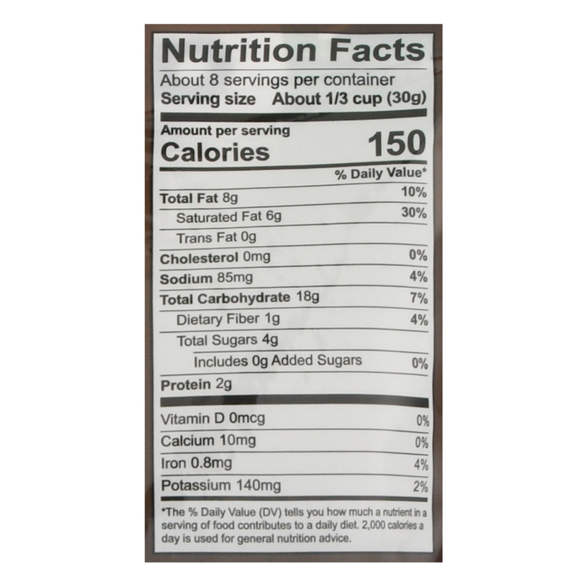 Organic Oats, Organic Coconut Oil, Organic Date Powder, Organic Fair Trade 100% Cacao Dark Chocolate (Organic Cacao Beans, Organic Cocoa Butter), Organic Cocoa Powder, Sea Salt, Organic Rosemary Extra…
