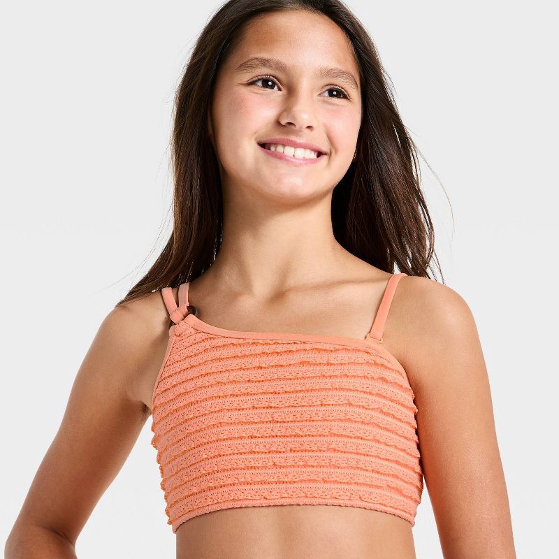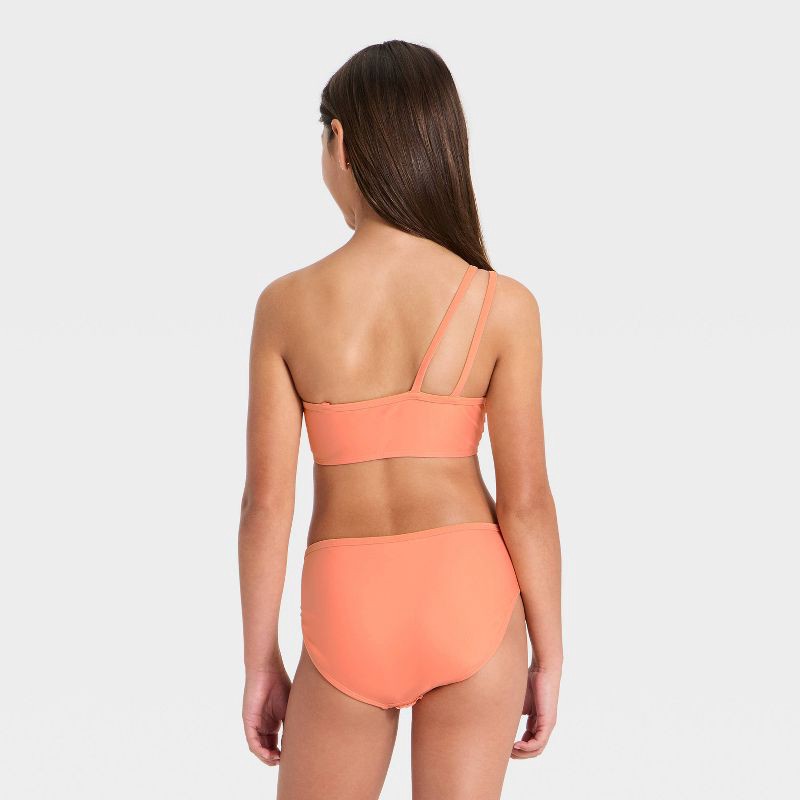 Girls' Textured One Shoulder Bikini Set - art class™Peach Orange L