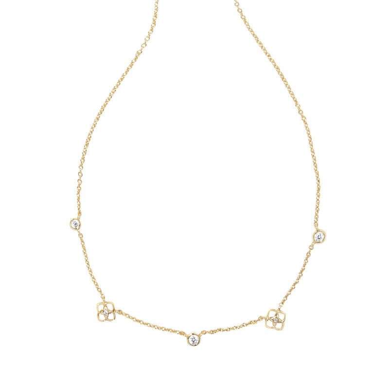 Timeless, dainty, and with the perfect touch of sparkle, the Iris White Strand Necklace has it all. Featuring petite crystals and miniature iterations of the iconic Kendra Scott medallion, this neckla…