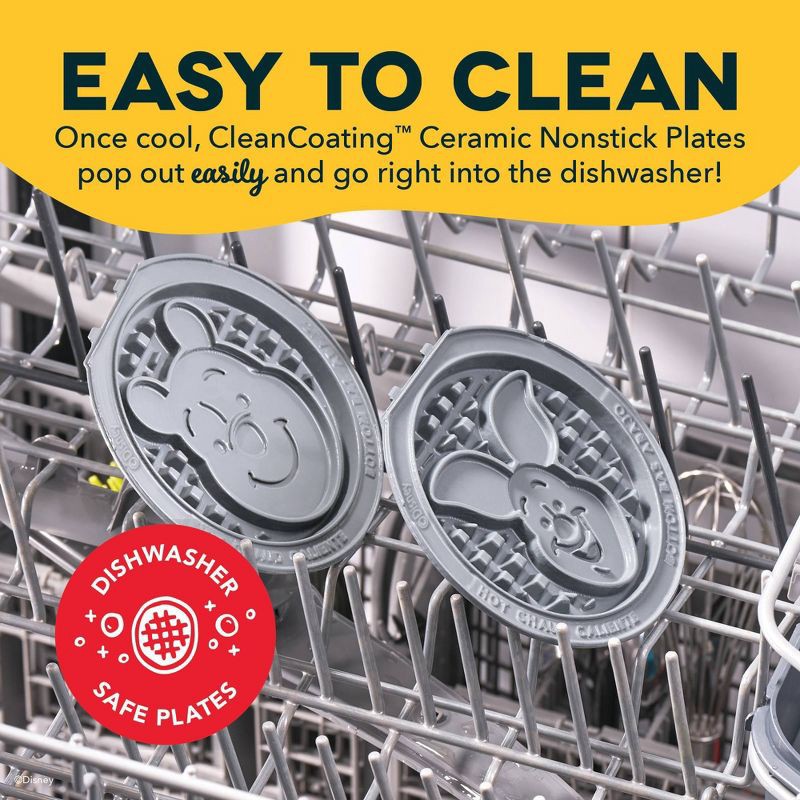 - Includes two 4” Removable Waffle Plates featuring 2 iconic Disney characters