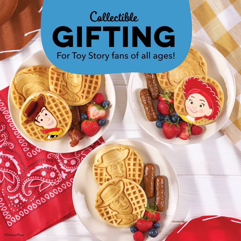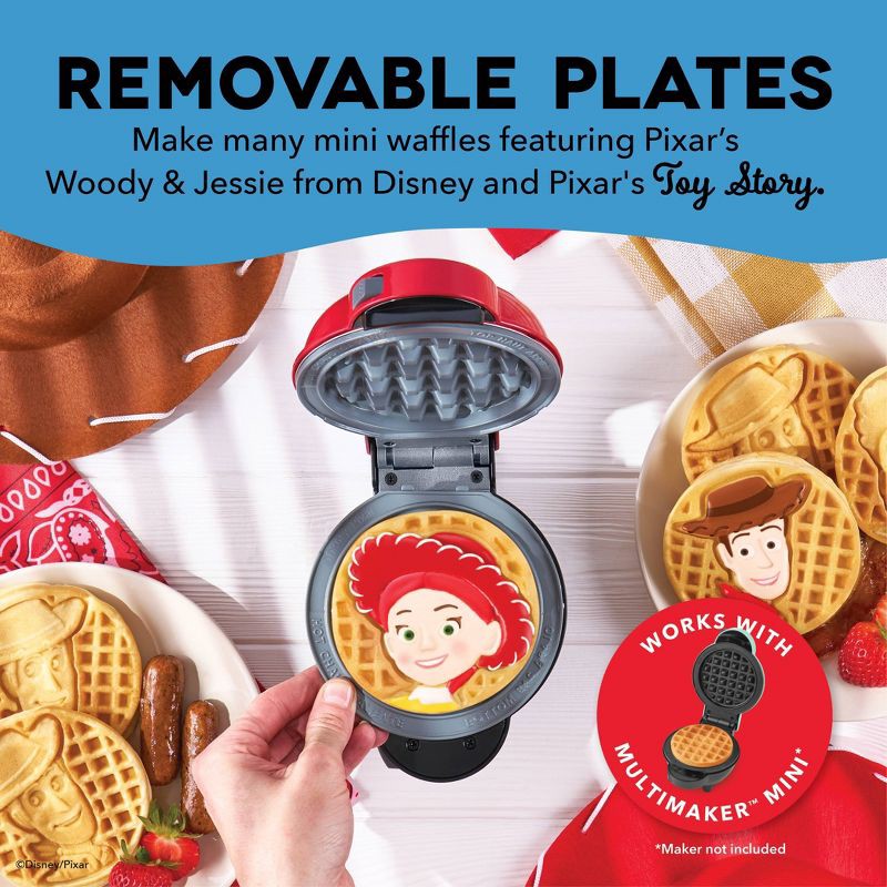 - Includes: One Woody Removable Waffle Plate and one Jessie Removable Waffle Plate