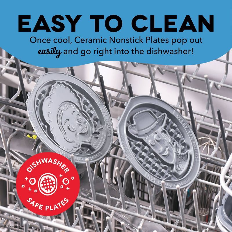 - Includes two 4” Removable Waffle Plates featuring 2 iconic Disney characters