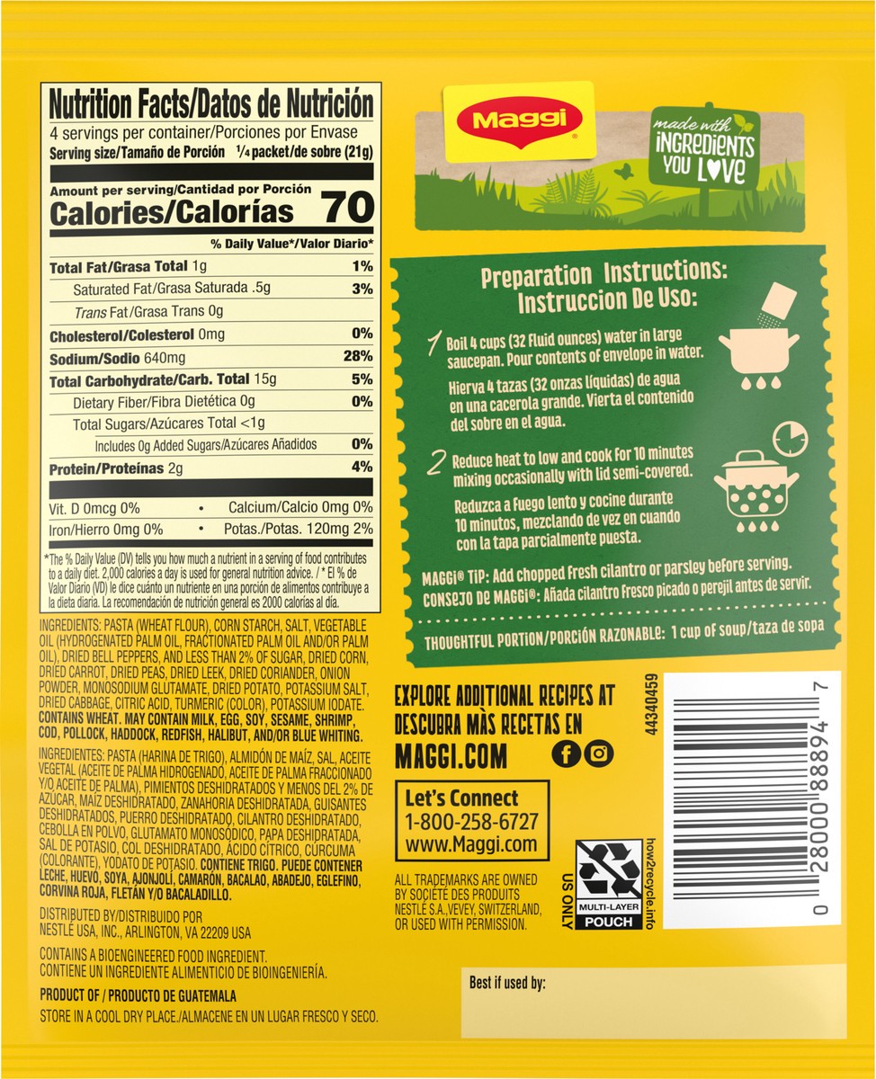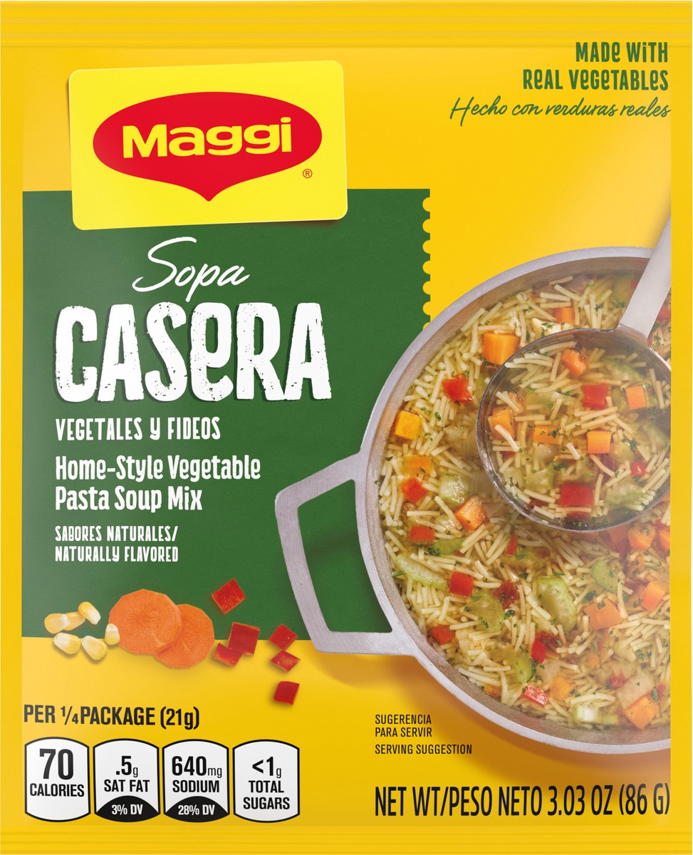 - AUTHENTIC LATIN FLAVOR: Experience the taste of Latin America with our Maggi Sopa Casera Vegetables y Fideos Home Style Vegetable Pasta Soup Mix. Bring yourself and your loved ones together with home cooking