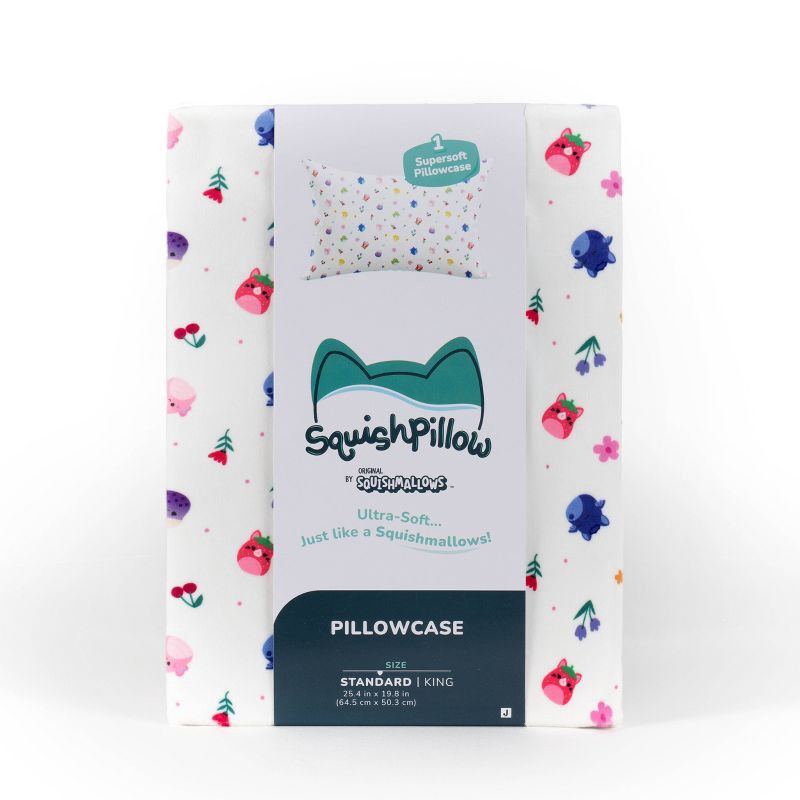- FEATURE PRINT Squish your sleep with the “Forever Flowers” SquishPillow Pillowcase, a vibrant floral dreamscape featuring Squishmallows favorites like Junie the Yellow Banana and Olma the Strawberry Cat.