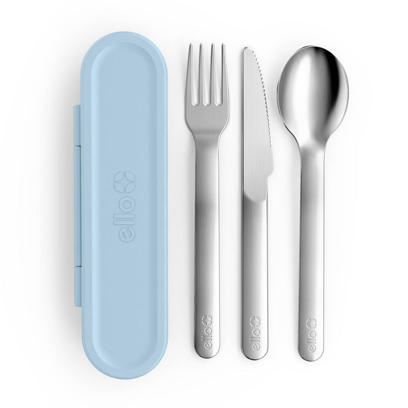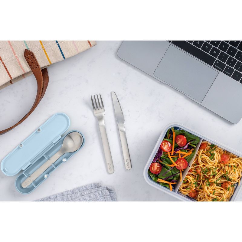 - Set Includes: Knife, spoon, fork, and portable plastic case.