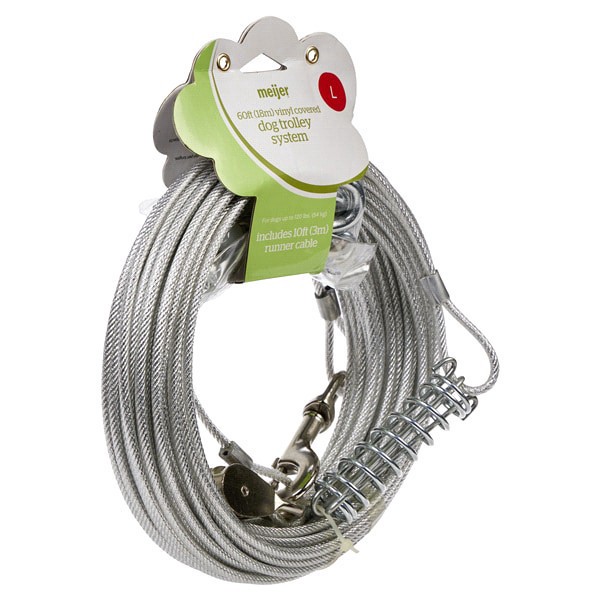 This large dog trolley is a robust system designed for your pet's outdoor adventures. With a 60ft vinyl-covered trolley and an additional 10ft runner cable, it provides ample space for your dog to roa…