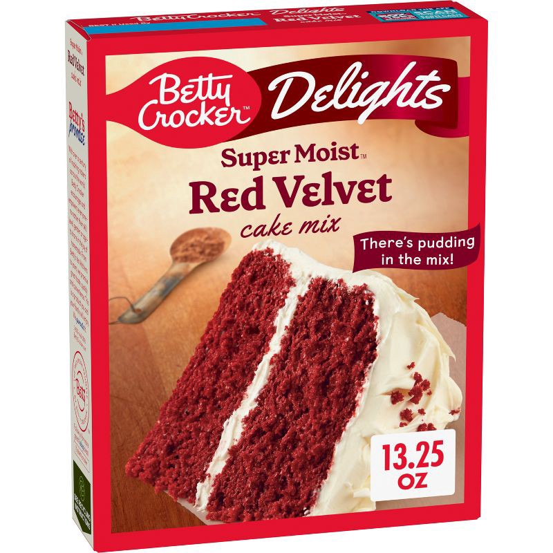 Betty Crocker Delights Super Moist Red Velvet Cake Mix is rich and decadent. Ready to bake in minutes, this red velvet cake can be topped with delicious frosting for a classic take, or try something n…