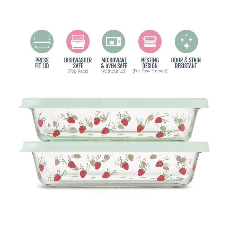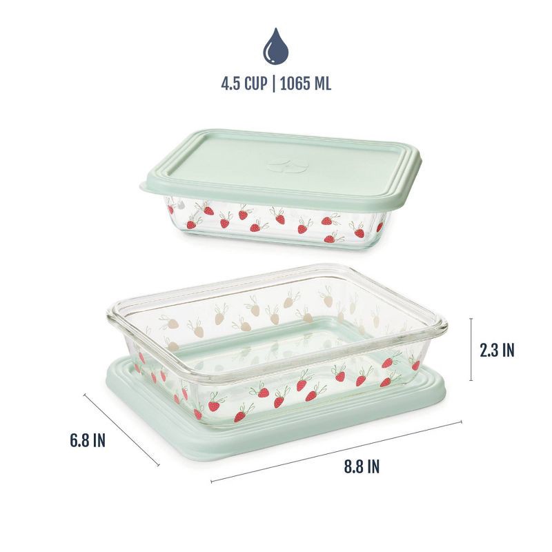 - What's Included: Two 4.5-cup glass food containers with two press-fit, leak-resistant lids.
