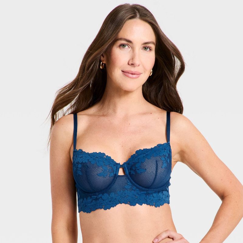 Women's Bloom Lace Unlined Long Line Balconette Bra - Auden™ Blue 38C