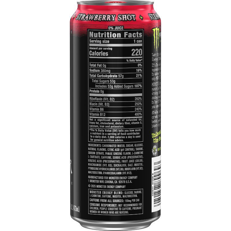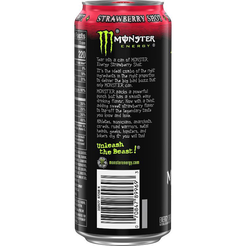 - Tear into a can of Monster Energy Strawberry shot