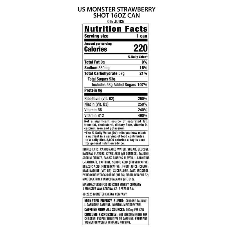 Monster packs a powerful punch but has a smooth easy drinking flavor. Now with a twist, adding sweet strawberry flavor to top-off the legendary taste you know and love
