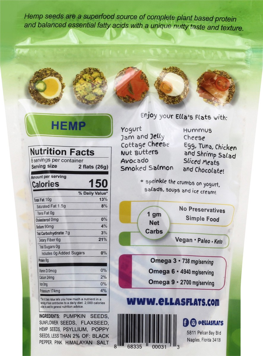 1 gm net carbs. Omega 3 - 738 mg/serving. Omega 6 - 4940 mg/serving. Omega 9 - 2700 mg/serving. Certified Gluten-Free. Gluten free. Sugar free. Grain free. Vegan. Paleo. Keto. High fiber. Non GMO Projā¦