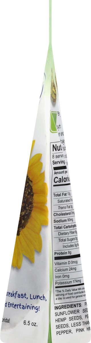 Pumpkin Seeds, Sunflower Seeds, Flaxseed, Hemp Seeds, Psyllium, Poppy Seeds, Less than 2% of: Black Pepper, Pink Himalayan Salt.