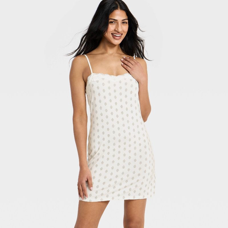 Women's Lace Cloud Knit Chemise - Auden™ Cream Block Printed M