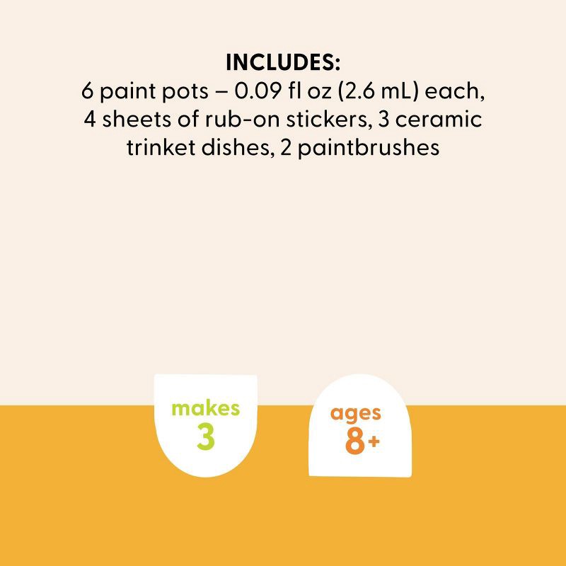 - Includes trinket dishes, stickers, paint pots and more