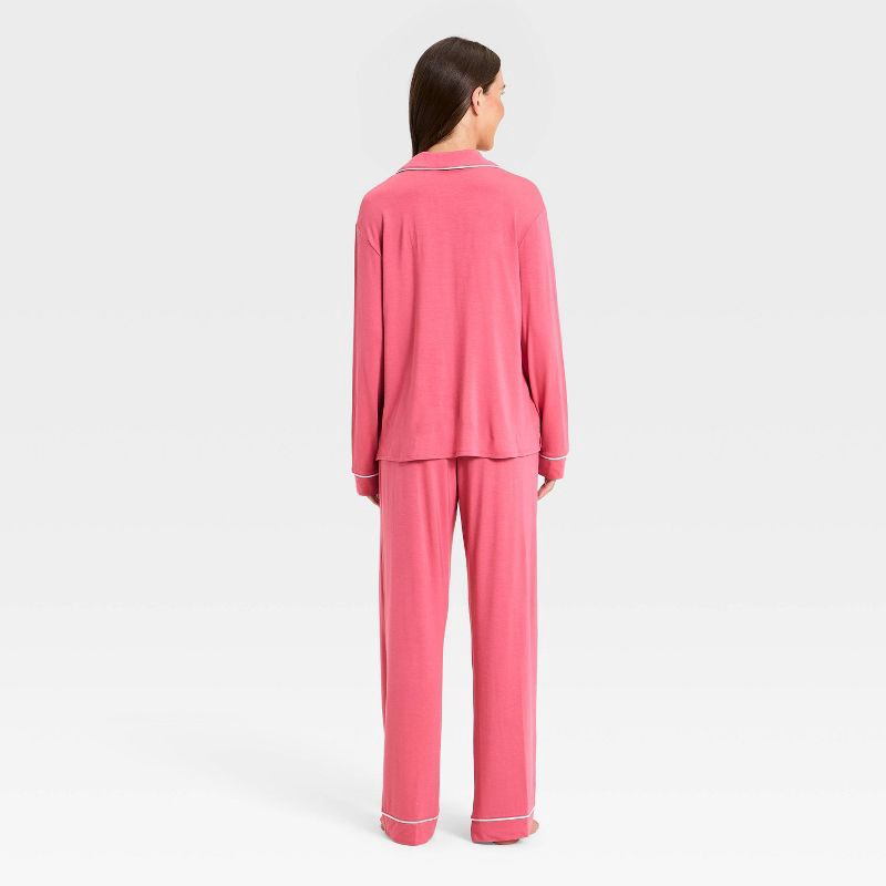Women's Cloud Knit Long Sleeve Notch Collar Top and Pants Pajama Set - Auden™ Pink XXL