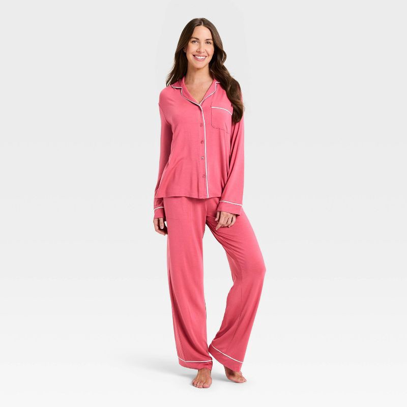 Stay cozy and effortlessly stylish during the night with the Cloud Knit Long-Sleeve Notch Collar Top and Pants Pajama Set from Auden™. Made from modal-spandex blend fabric for a comfortable fit, this …