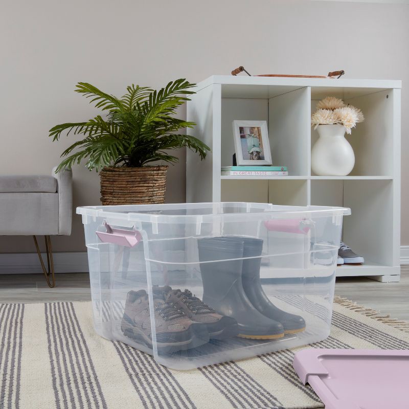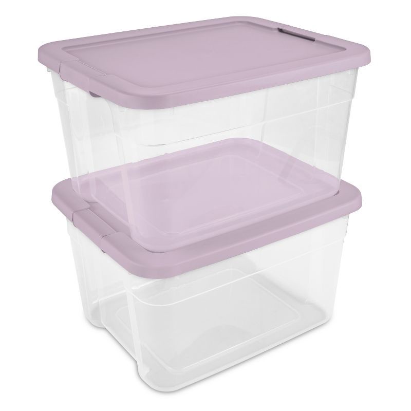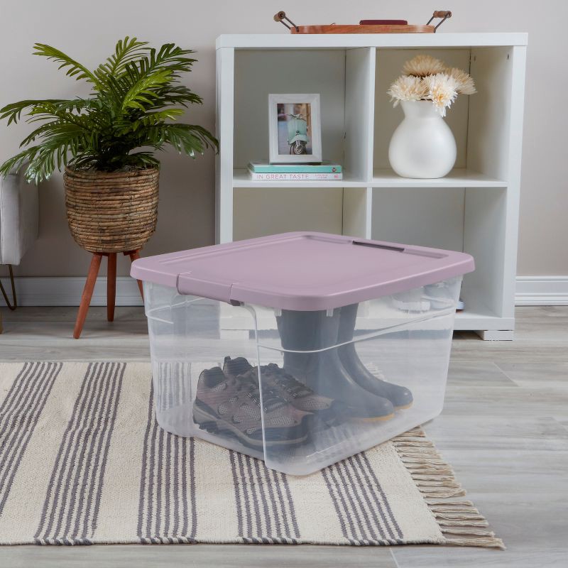 66qt Latching Storage Box Lavender Lid and Latch Clear - Brightroom™