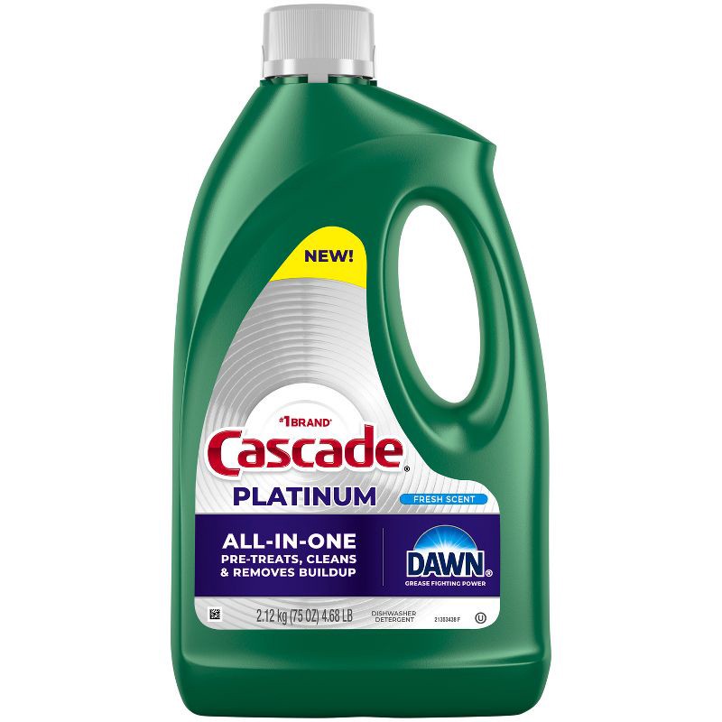Cascade Fresh Platinum Gel Dishwasher Detergents - 75oz: Plastic Bottle, Glass Protectant, Removes Grease