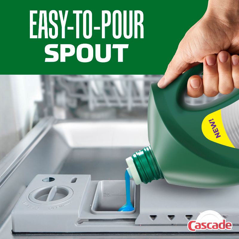 - EASY TO USE: Dispense into your dishwasher with our easy to pour spout, and pre-treat directly onto stuck-on messes. Use with Cascade Clean & Dry Booster Rinse Aid for 5X drying and spot prevention and Cascade Platinum Dishwasher Cleaner.