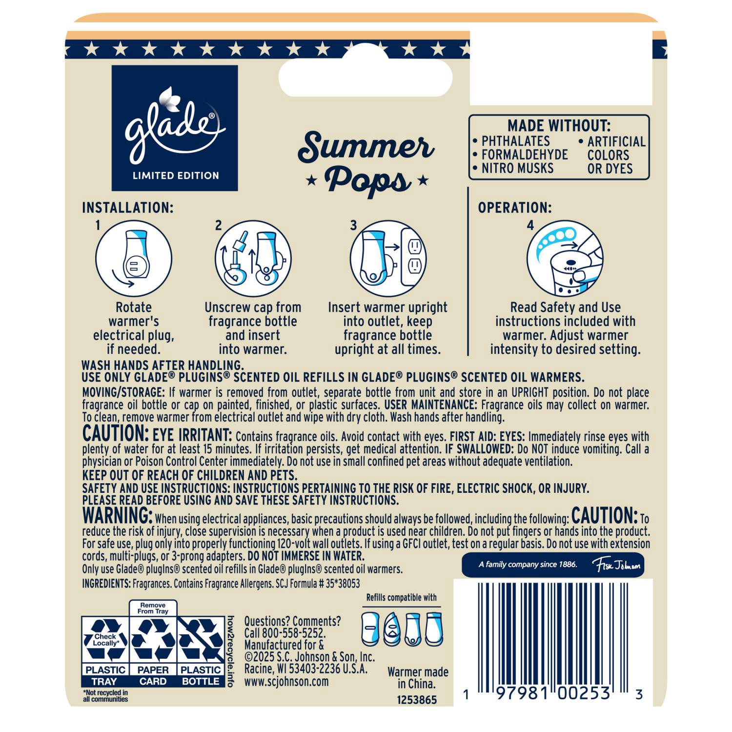 Glade Plugins Refills Air Freshener Starter Kit - Summer Pops - 1.34 fl oz - 1 Warmer + 2 Refills