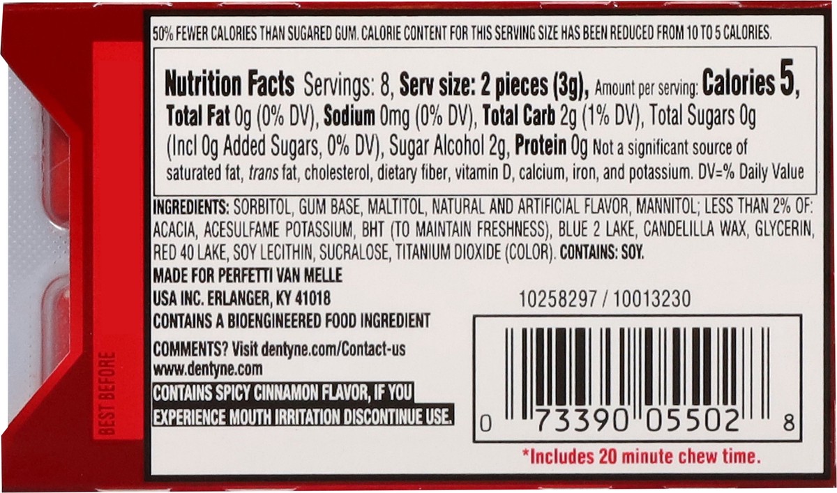 Dentyne Fire Spicy Cinnamon Sugar Free Gum freshens your breath for up to 60 minutes, including 20 minutes of chew time, for a bright feeling. These small cubes of chewing gum are just the right size …