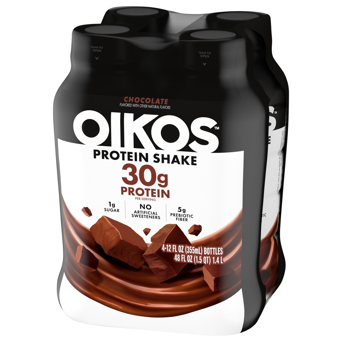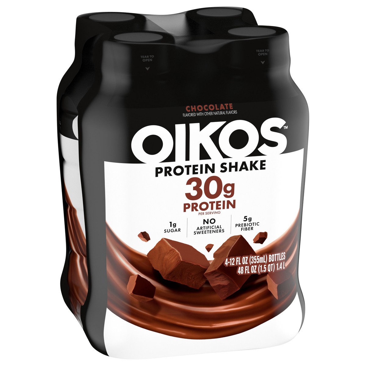 Oikos Protein Shake, Chocolate, 30g High Protein Drinks, Shelf Stable, Ready to Drink, 5g Prebiotic Fiber, 12 fl oz Bottle, 4 Count