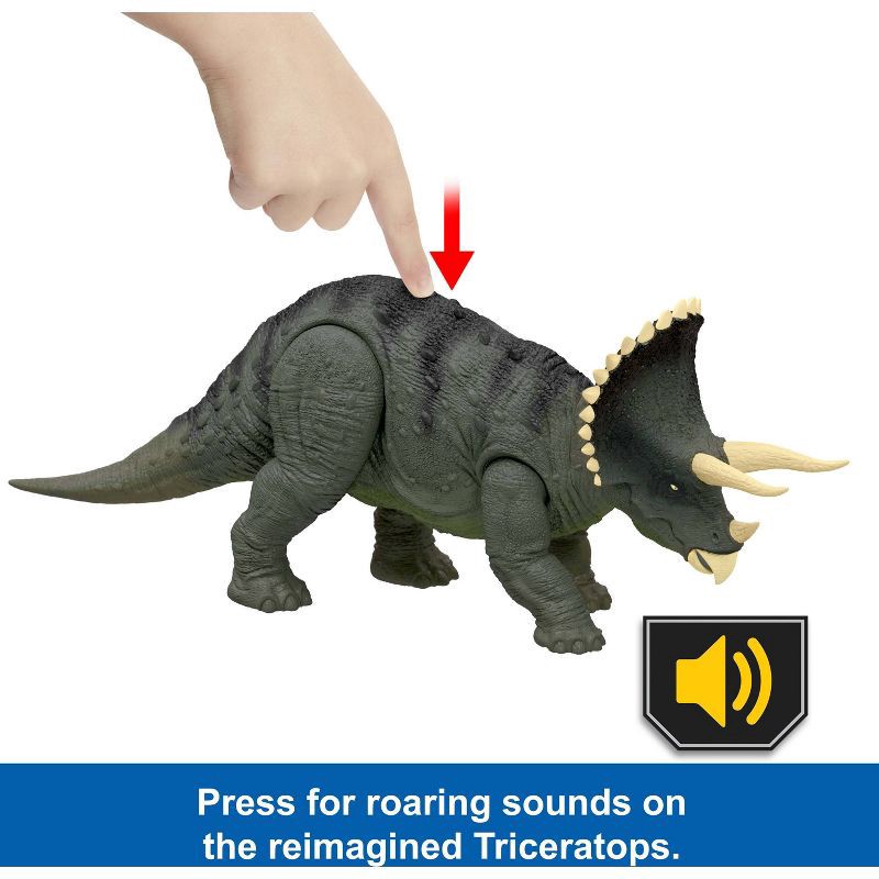 - Roaring fun! Press the Triceratops' body to hear fierce dinosaur roars to intensify battle play!