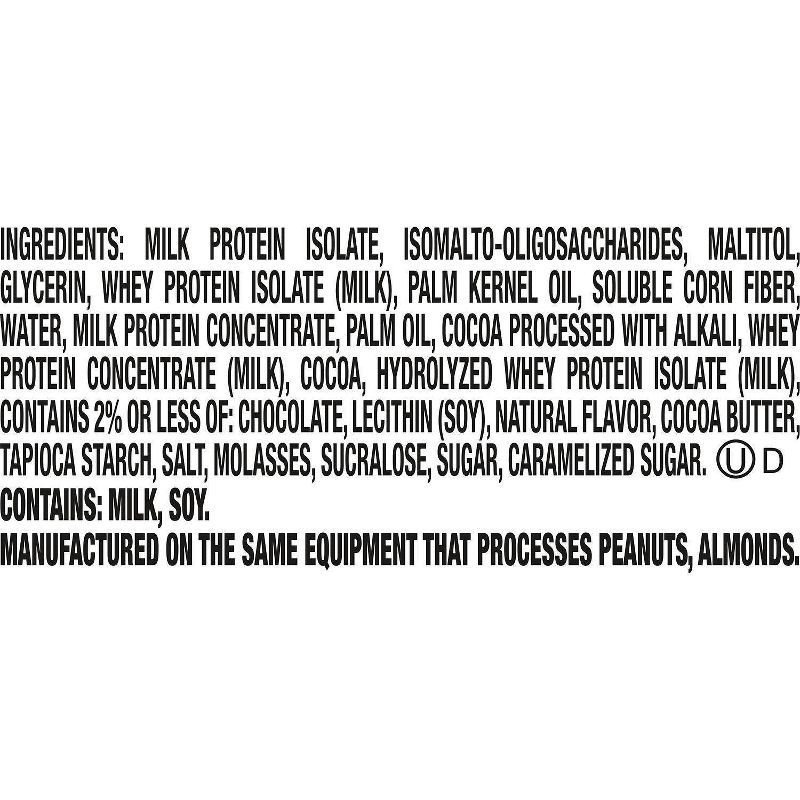MILK PROTEIN ISOLATE, ISOMALTO-OLIGOSACCHARIDES, MALTITOL, GLYCERIN, WHEY PROTEIN ISOLATE (MILK), PALM KERNEL OIL, SOLUBLE CORN FIBER, WATER, MILK PROTEIN CONCENTRATE, PALM OIL, COCOA PROCESSED WITH A…