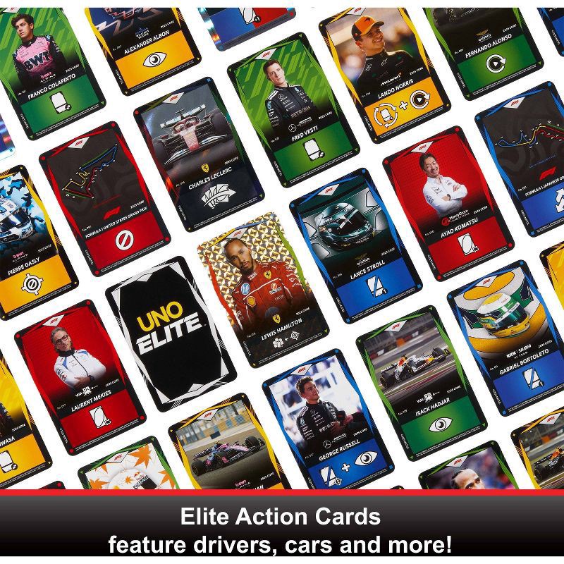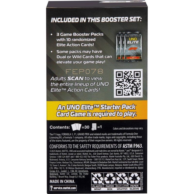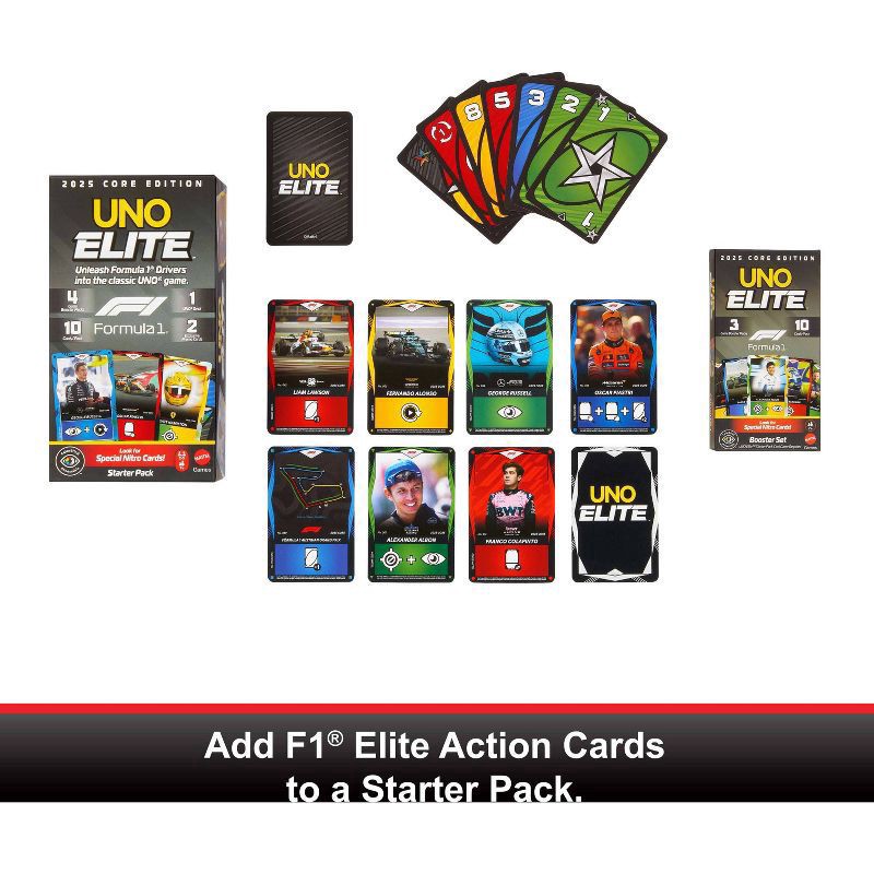 Add the cards from the UNO Elite Formula 1 2025 Core Edition Booster Set to an UNO Elite Formula 1 card game to get the race going! Each set includes three Game Booster Packs, each with 10 Elite Actio…