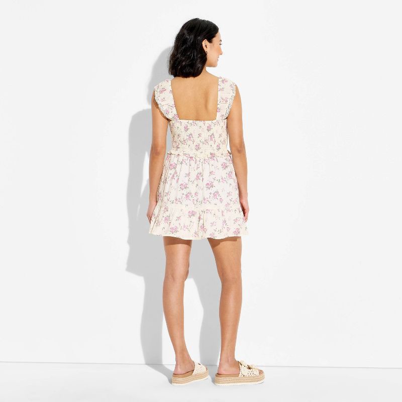Women's Smocked Flutter Sleeve Mini Dress - Wild Fable™ Cream Floral XS