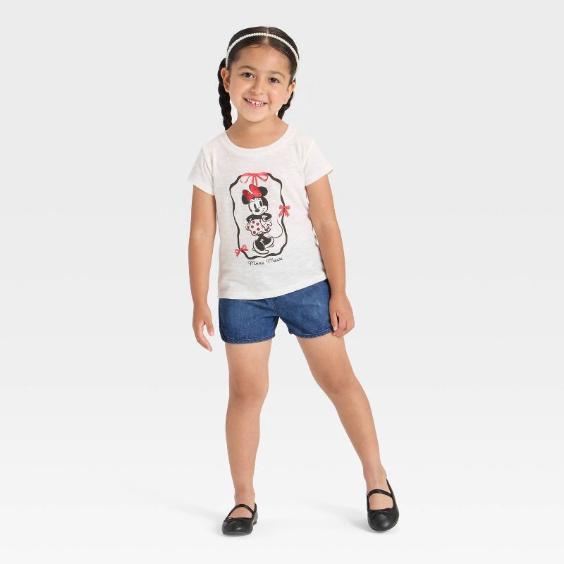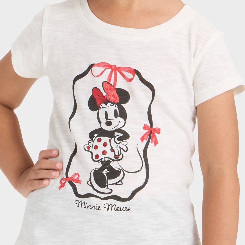 Toddler Girls' Disney Minnie Mouse Short Sleeve Graphic T-Shirt - Off-White 3T