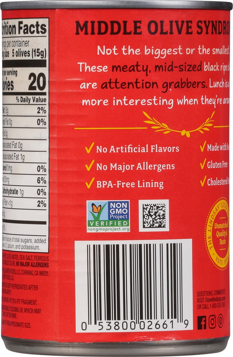 Perfecting for four generations. Mild & nutty. Middle Olive Syndrome: Not the biggest or the smallest. These meaty, mid-sized black ripe olives are attention grabbers. Lunch is a lot more interesting …