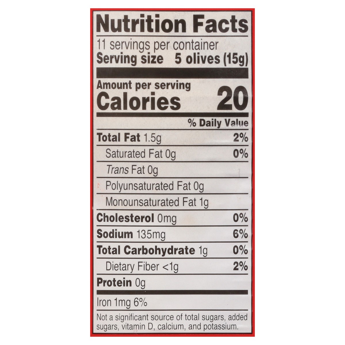 Ripe Olives, Water, Sea Salt, Ferrous Gluconate (to Stabilize Color).