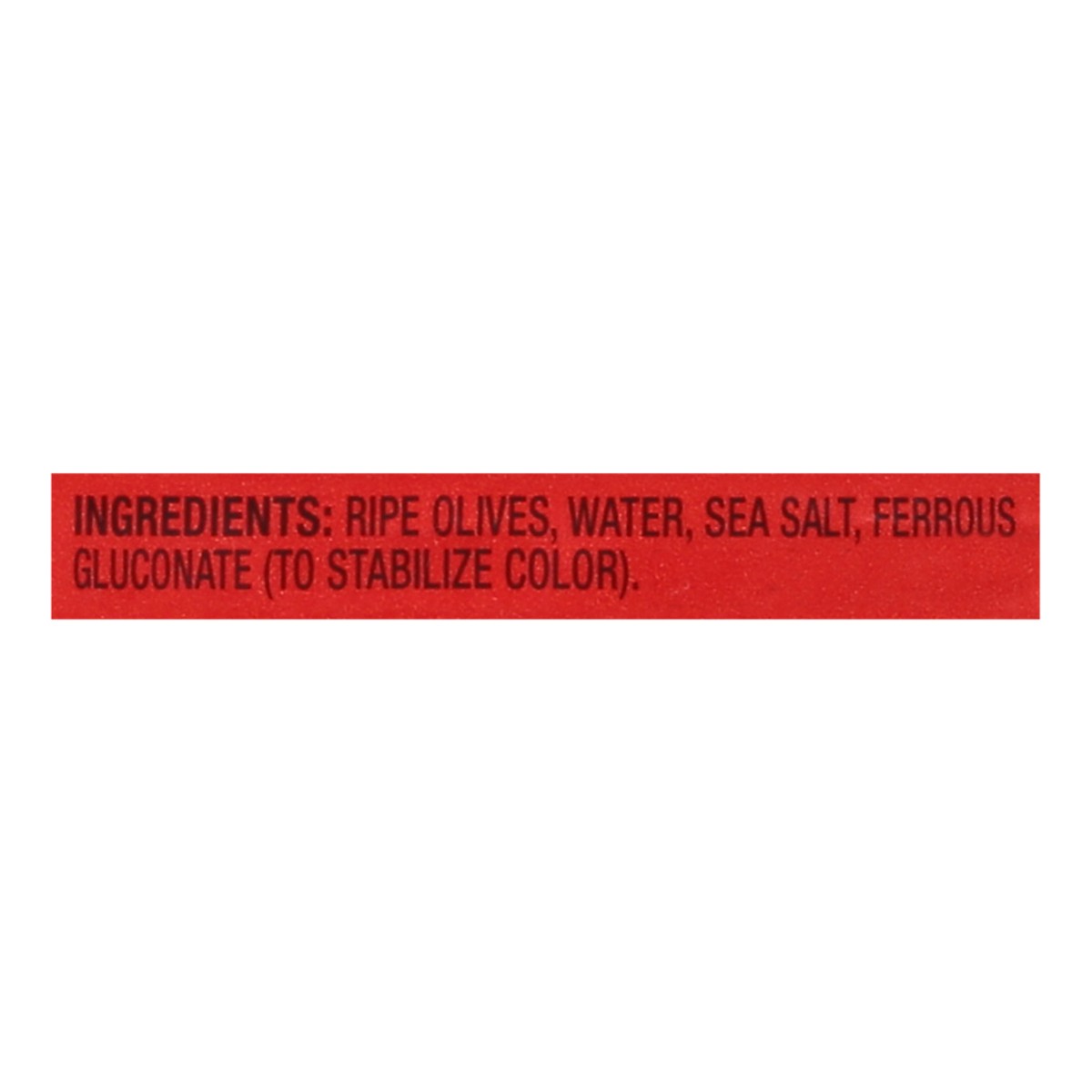Ripe Olives, Water, Sea Salt, Ferrous Gluconate (to Stabilize Color).